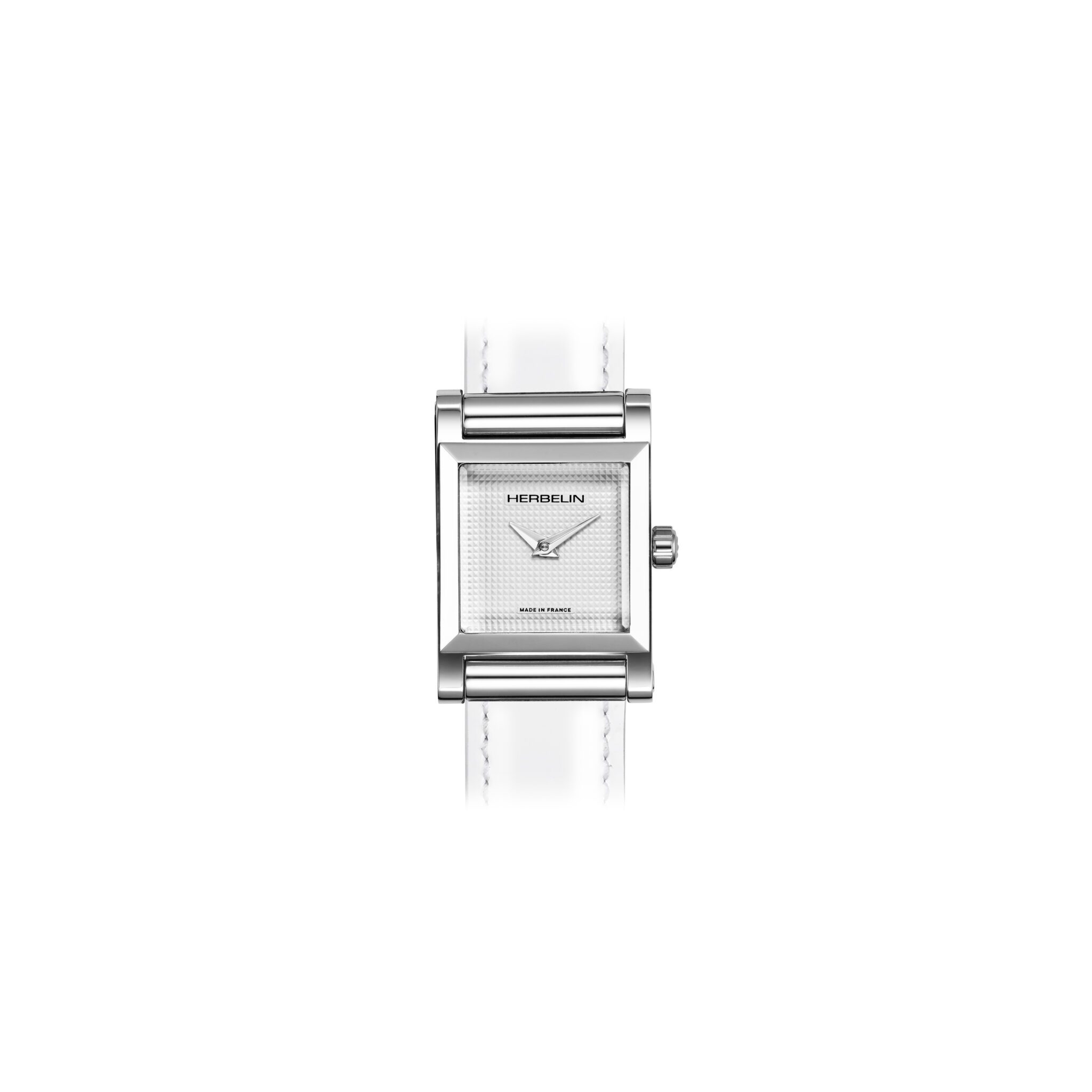 Das quadratische Antarès-Gehäuse verbindet pure Eleganz mit Modernität und begeistert auf den ersten Blick. Das feminine Gehäuse ist aus silberfarbenem Edelstahl 316L gefertigt. Unter dem facettierten Saphirglas zeigt sich ein modernes Zifferblatt mit einer Clous de Paris Guillochierung. Eine wunderschöne Uhr, ganz im Stil des französischen Savoir-Vivre.