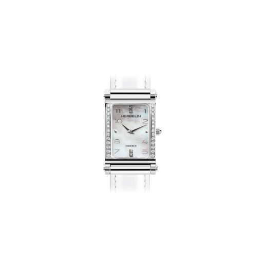Dieses rechteckige Antarès-Gehäuse ist klassisch elegant und vor allem brilliant. Die mit 26 Diamanten bestückte Lünette lässt Frauenherzen höherschlagen und begeistert auf den ersten Blick. Das rechteckige Gehäuse ist aus silberfarbenem Edelstahl 316L gefertigt. Unter dem kratzfesten Saphirglas offenbart sich ein attraktives Zifferblatt aus hell schimmerndem Perlmutt mit arabischen Ziffern, das wiederum mit 4 funkelnden Diamanten besetzt ist und den Charme dieser femininen Linie wunderbar wiederspiegelt.