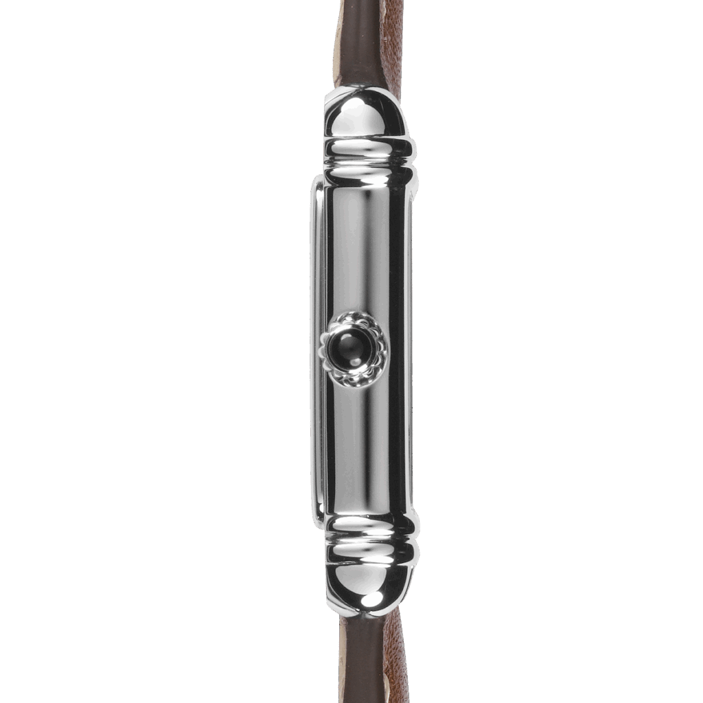 Das hell abgesteppte Lederarmband in einem edlen Braunton schmiegt sich angenehm um das Handgelenk und schließt sicher. Mit diesem Klassiker sehen Sie immer gut aus.