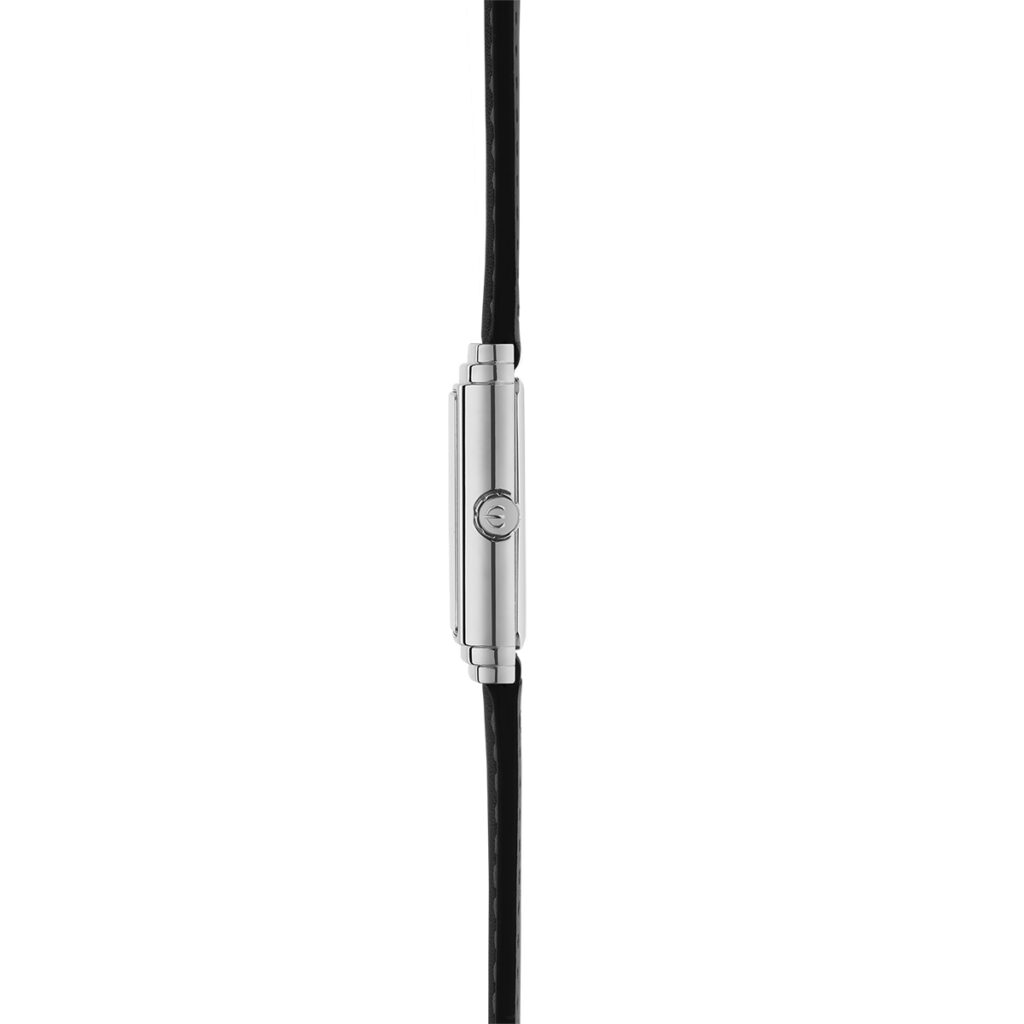 Diese klassisch elegante Damenuhr macht der Ära, deren Namen sie trägt alle Ehre. Das facettierte Gehäuse aus poliertem Edelstahl misst 22 x 29,5 Millimeter und versetzt uns zusammmen mit dem ganz im Stil des Art Déco ausgeführte Ziffernblatts, direkt in jene Epoche, die 1925 in Paris ihre Blütezeit erfuhr. Das elegante schwarze Zifferblatt ist mit zehn echten Diamanten dekoriert, die die Schönheit der Uhr glänzend unterstreichen. Die Art Déco 1925 ist mit einem Schweizer Quarzwerk ausgestattet und ist bis zu drei bar wasserdicht. Das schwarze Lederband mit klassischer Prägung fügt sich ganz ästhetisch in die getreppten Bandanstöße ein. Es schmiegt sich angenehm um das Handgelenk und schließt sicher. Die Art Déco 1925’S im Stil der 1925er Jahre ist ein attraktives Accessoire für jeden Tag. Stilvoll, elegant, feminin. Die Klassische mit dem gewissen Etwas lässt sich zu den verschiedenen Stilen wunderbar kombinieren.