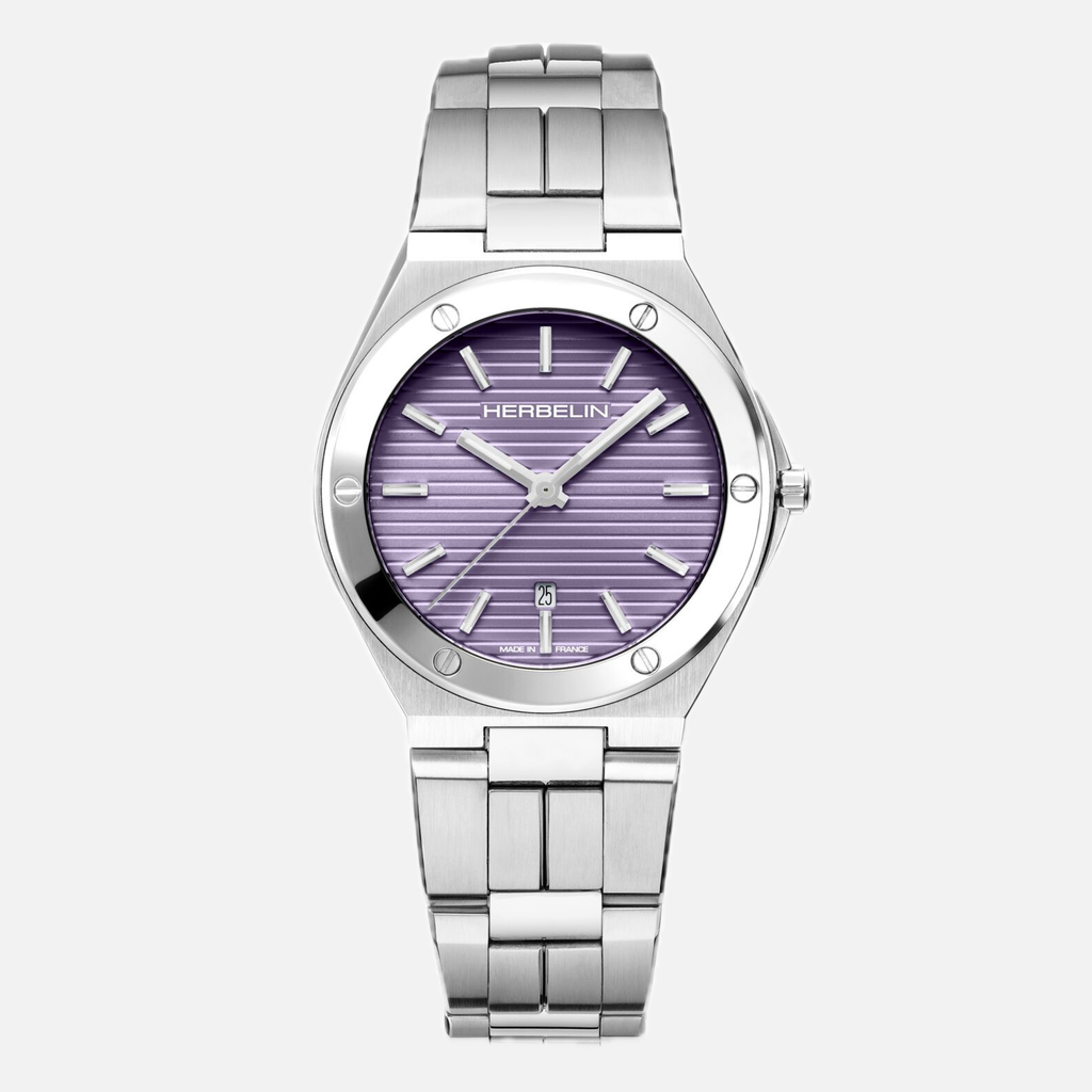 Die Damenuhr Cap Camarat vereint einen attraktiver Mix aus sportlichem Schick und zugleich femininer Eleganz, der zu jeder Gelegenheit passt. Sie ist komplett aus hochwertigem Edelstahl gefertigt und überzeugt mit ihrem French-Navy-Zifferblatt in einer außergewöhnlichen stylischen, mutigen und sehr femininen Trendfarbe: einem wunderschönen Violetton ! Die lebendige violette Farbe zieht die Blicke auf sich und ist die perfekte Ergänzung für Ihren Look. Gepaart mit den dezent silberfarbenen Leuchtzeigern und -indizes samt Datumsanzeige ist eine gute Ablesbarkeit der Zeit gewährleistet.