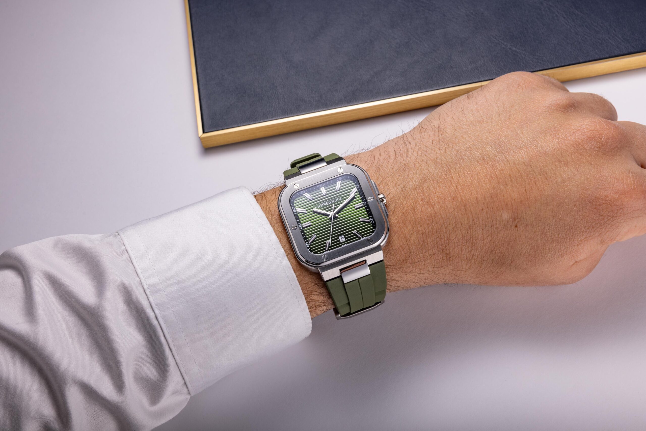 Stilsicher und markant: Die Cap Camarat mit khakigrünem Zifferblatt im French-Navy-Look und passendem FKM-Kautschukband überzeugt mit modernem Design und sportlicher Raffinesse.