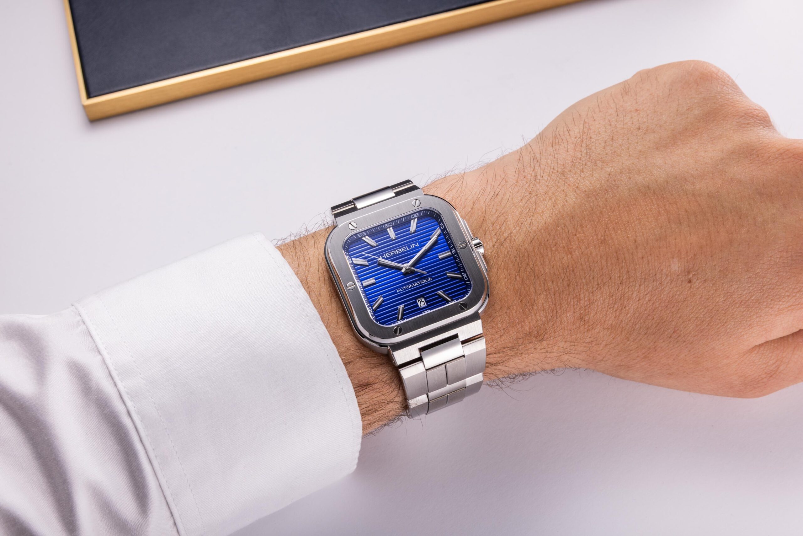 Bereiten Sie sich auf bewundernde Blicke vor – die Cap Camarat Automatic mit kobaltblauem French-Navy-Zifferblatt überzeugt auf den ersten Blick mit ihrer kraftvollen Ausstrahlung und ihrem stilvollen Auftritt. Das klassische Zifferblatt in intensiver Blau-Nuance wird durch silberfarbene Leuchtzeiger, markante Indizes und eine Datumsanzeige bei 6 Uhr ergänzt und verleiht der Uhr eine elegante Tiefe. Ihr ikonisches Gehäuse im quadratischen Design mit abgerundeten Kanten hebt sich bewusst von der Masse ab und unterstreicht den urbanen, selbstbewussten Charakter der Uhr.