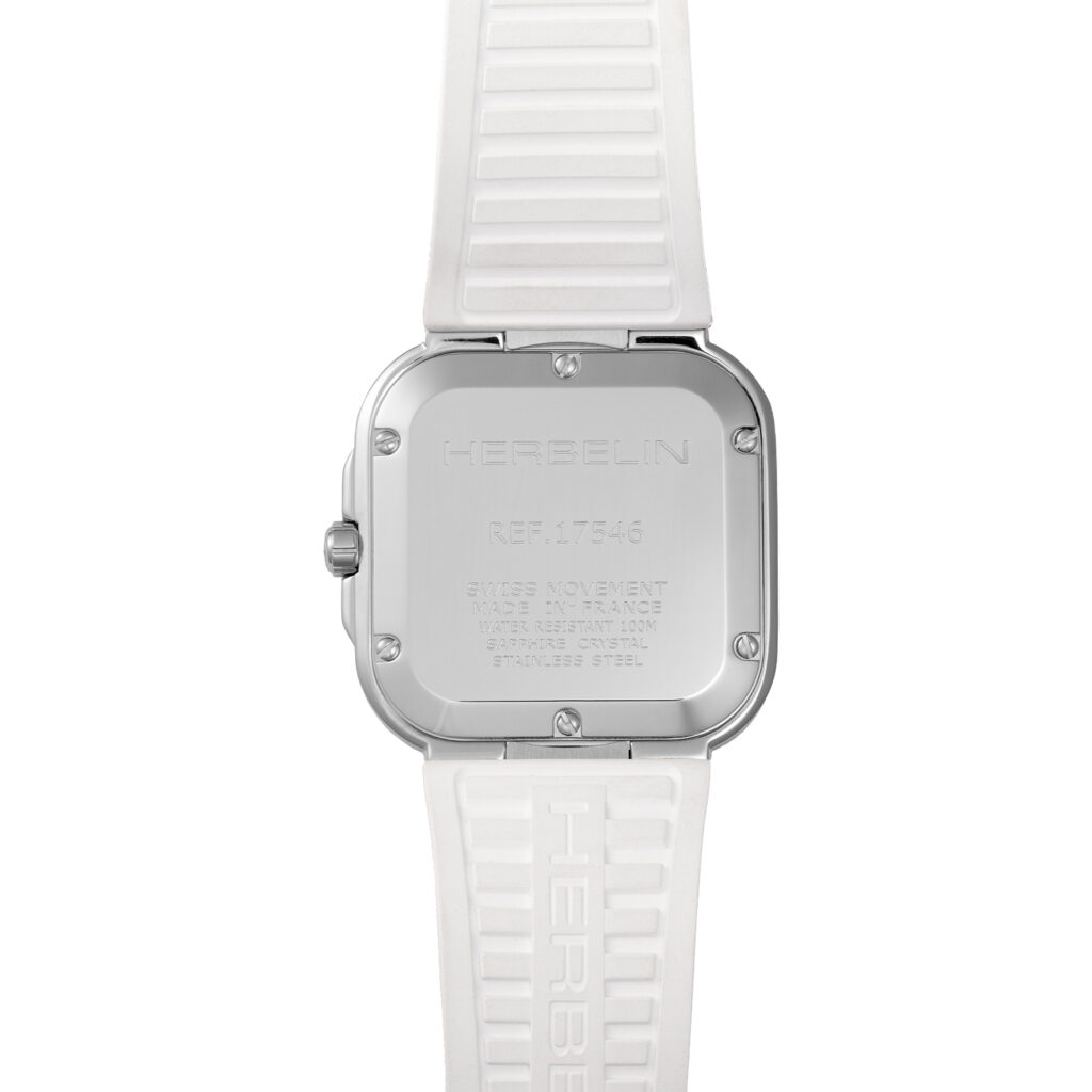 Das hochwertige FKM-Kautschukarmband in puritischem Weiß sieht stylisch aus und bietet einen hohen Tragekomfort. Es vollendet den besonderen Auftritt dieser schönen Retrouhr. Die „SQUARE“ sieht einfach toll aus und lässt Frauenherzen höher schlagen. Sie optimiert jeden Kleidungsstil und garantiert einen schicken Auftritt, egal zu welcher Gelegenheit. Ein echtes It-piece, ausdrucksstark und edel am Handgelenk.