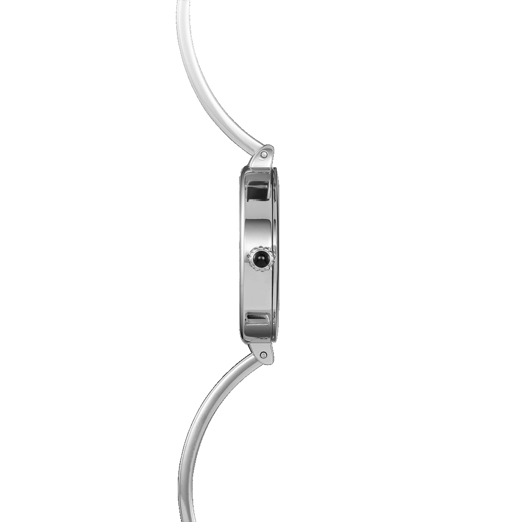 Die silberfarbene Spangenuhr mit dem schwarzen Zifferblatt von HERBELIN ist eine wunderbare Hommage an die Seventies gepaart mit Weiblichkeit und Stil. Mit ihren schlanken Kurven und dem puristischen Design, betont die FIL die Eleganz des Schlichten. Die kaum wahrnehmbare abgerundete Lünette des runden Edelstahlgehäuses und das schwarze minimalistisch gestaltete Zifferblatt ziehen die Blicke auf sich. Das mit einer edlen Schmuckschließe ausgestattete Spangenband schmiegt sich perfekt um das Handgelenk. Im Innern der Ladieswatch tickt ein Schweizer Quarzwerk. Diese feminine Uhr ist mehr als ein Zeitmesser und prädestiniert für alle Modebewussten, die gerne mit dem Trend gehen, ebenso wie für alle Liebhaber des Retrodesign und hochwertiger Qualität. Die filigrane FIL macht Freude auf den kommenden Frühling, Sonne, Wärme und etwas mehr Leichtigkeit.
