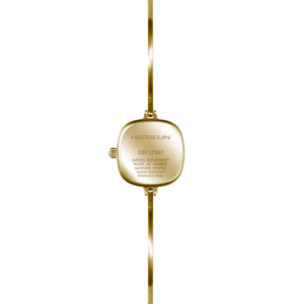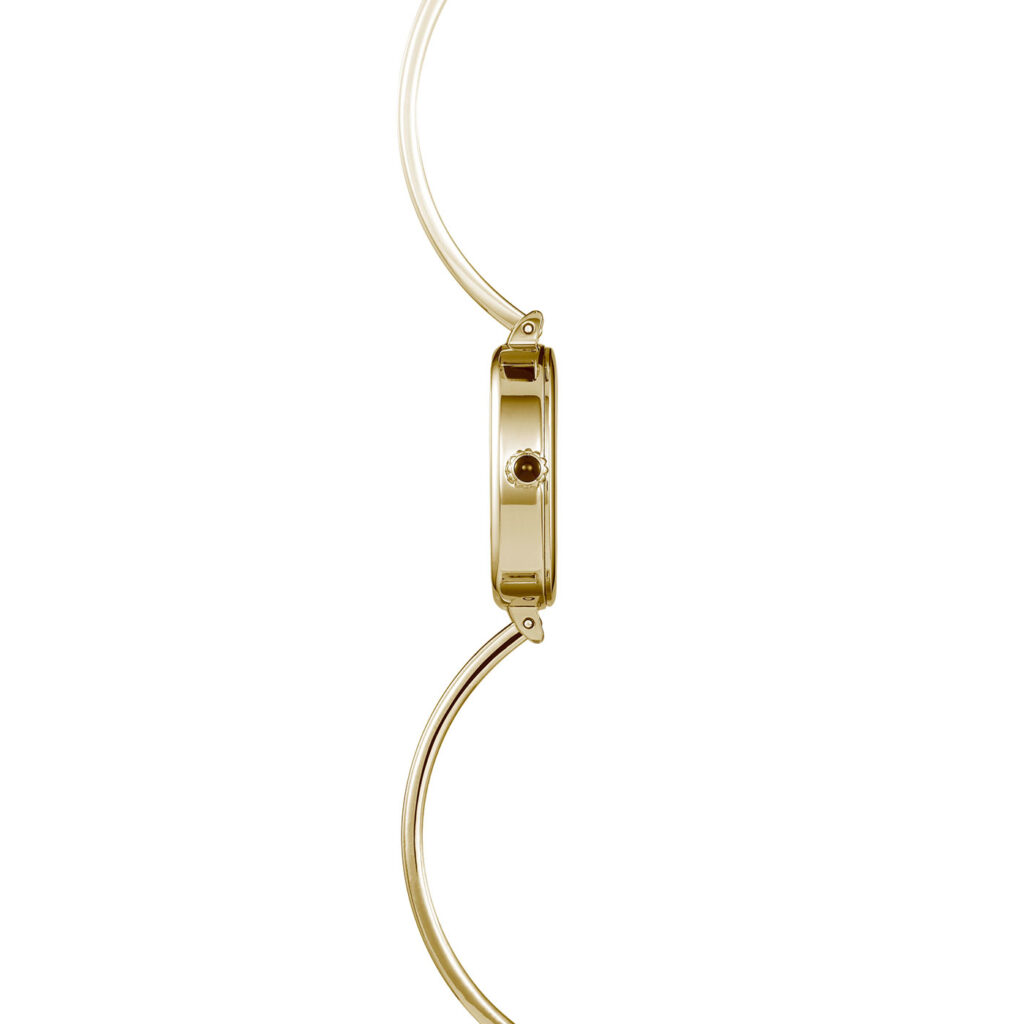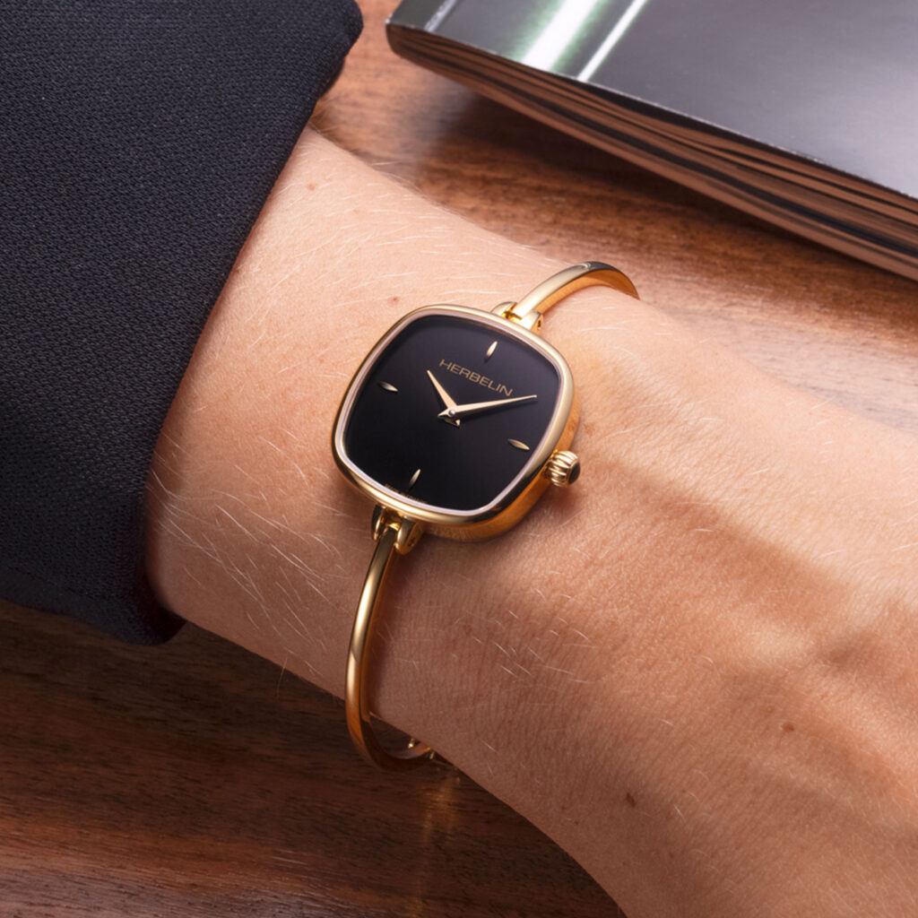 Die goldfarbene Zweizeigeruhr FIL mit der Schmuckspange präsentiert sich wunderbar retro und filigran zugleich. Mit ihren schlanken Kurven und dem puristischen Design, betont die FIL die Eleganz des Schlichten. Das tiefschwarze schlicht gestaltete Zifferblatt und das an den Ecken abgerundete Gehäuse sind die perfekte Kombination und bewirken einen starken Auftritt. Das Spangenband ist mit einer hochwertigen Schmuckschließe ausgestattet und schmiegt sich so angenehm um das Handgelenk. Im Innern der FIL tickt ein Schweizer Quarzwerk. Diese wunderschöne Uhr ist ein echter Eyecatcher und prädestiniert für alle Trendsetter, ebenso wie für alle, die gerne weibliche schnörkellose Designs mit Power mögen. Ein Hauch der Seventies umgibt die FIL und macht Freude auf den kommenden Frühling, Sonne, Wärme und etwas mehr Leichtigkeit.