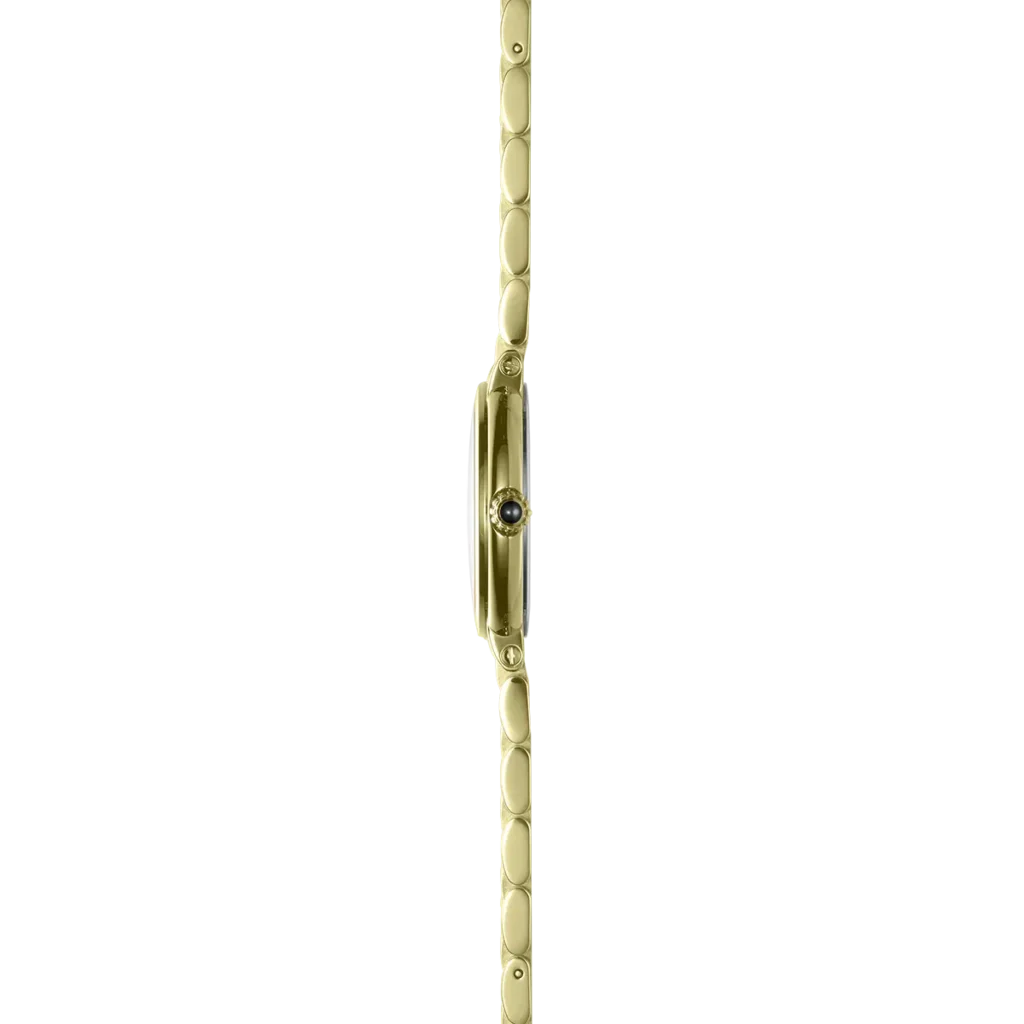 Diese wunderschöne klassisch elegante Uhr aus der Linie Galet gibt es nun auch in einer gelbgoldfarbenen Variante. Die Galet ist ein tolles Accessoire für jeden Tag. Sie bereichert ihr Outfit und schenkt uns immer eine gut ablesbare Zeit. Sie ist aus hochwertigen Materialien gefertigt und von einem Schweizer Uhrwerk angetrieben. Das silberfarbene Zifferblatt mit Sonnenschliff und kleiner Sekundenanzeige ist der Blickfang dieser Uhr. Die schönen römischen gelbgoldfarbenen Ziffern bilden einen angenehmen Kontrast und verleihen ihm einen klassischen Look. Das hochwertige Gliederarmband aus Edelstahl schmiegt sich angenehm um das Handgelenk und schließt sicher mit einer Faltschließe. Die Uhr wird in einer eleganten Etuibox geliefert.