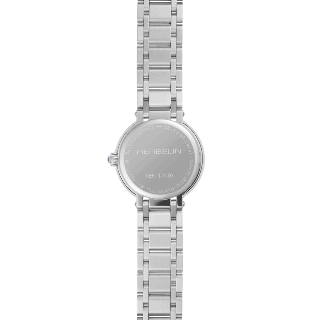 Die Damenuhr Galet präsentiert sich exklusiv feminin und spricht vor allem Frauen an, die Eleganz und Weiblichkeit schätzen. Die zierliche Feine erobert mit ihrer harmonischen Farbgebung in Edelstahl und dem silberfarben Zifferblatt mit feinem Sonnenschliff die Frauenherzen im Sturm und macht sie zu einer wahrhaft edlen Begleiterin. Die gebläuten Zeiger samt dem blauem Cabochon der Zwiebelkrone bringen einen Hauch von Farbe in die Gesamtkomposition. Das Modell wird von einem Schweizer Quarzwerk angetrieben. Das feminine Gliederband fügt sich stimmig an das Gehäuse an und schließt sicher mit einer hochwertigen Doppelfaltschließe. Mit dieser schönen Uhr haben Sie eine wunderbare Begleiterin an Ihrer Seite und sind zu jedem Anlass bestens gekleidet. Sie wird in einer eleganten Etuibox geliefert.