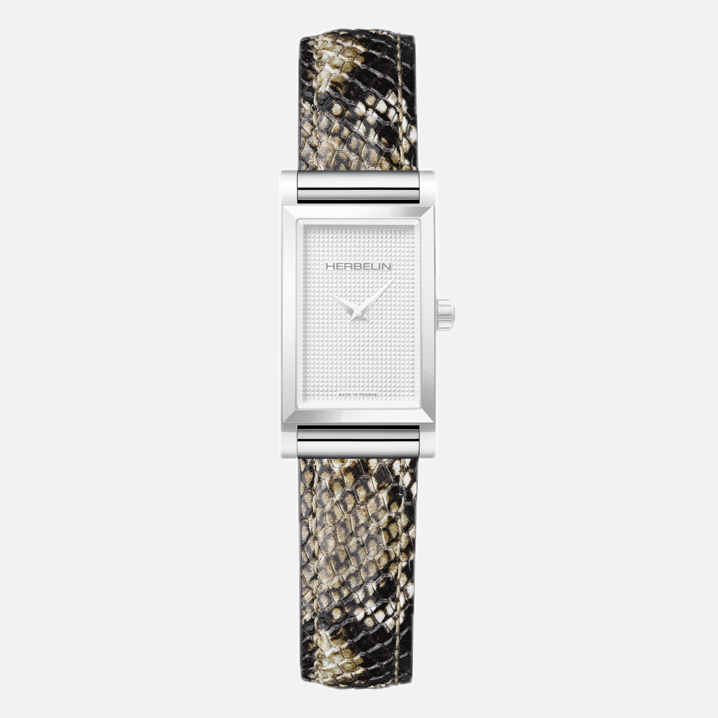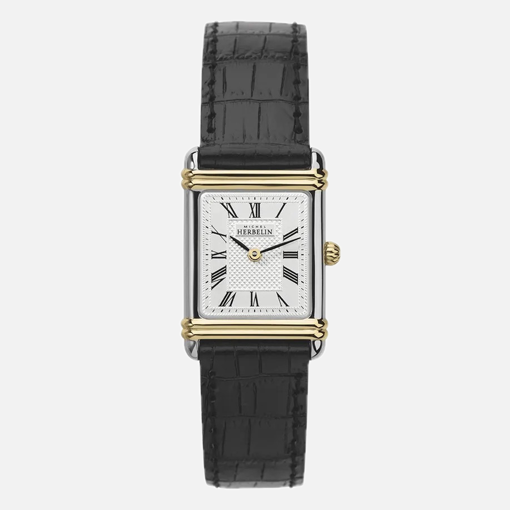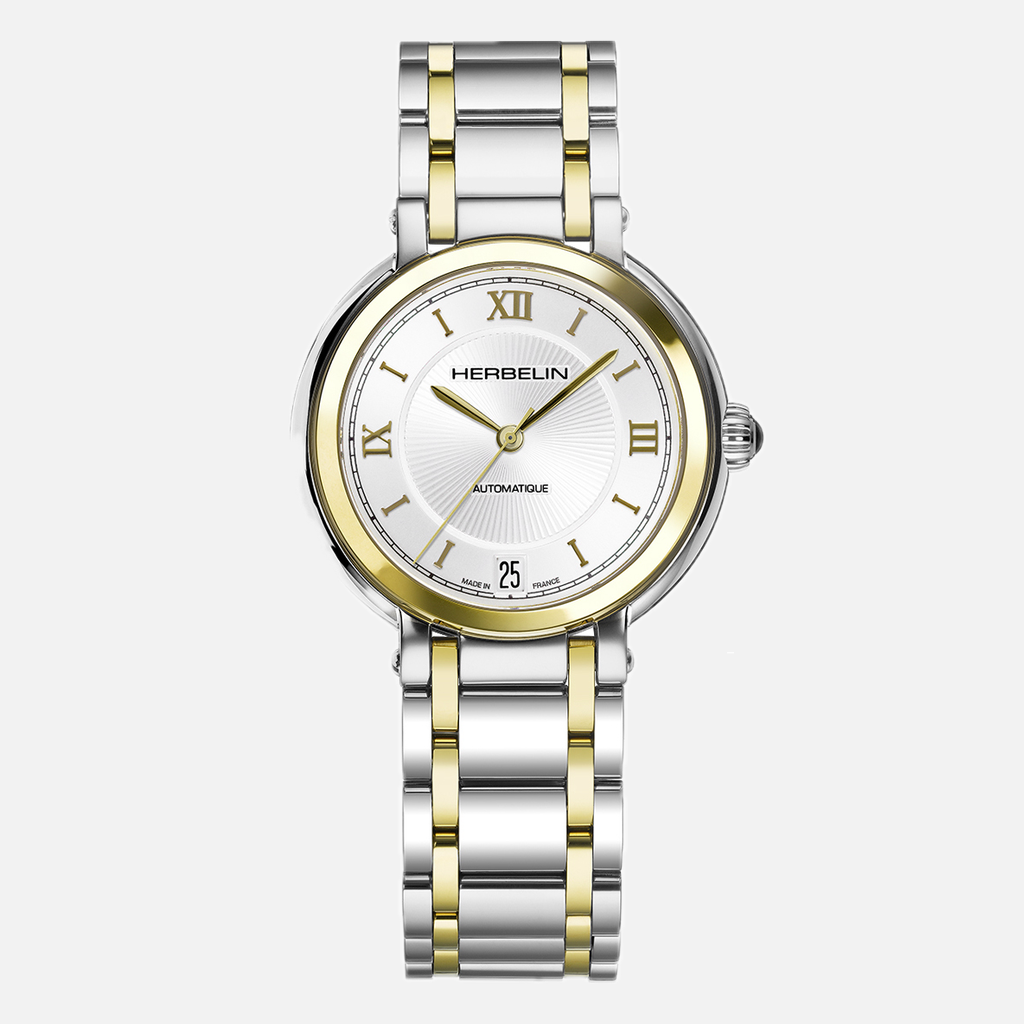 Wunderschön zart und feminin präsentiert sich die Damenuhr Galet. Die Zierliche spricht vor allem Frauen an, die Eleganz und Weiblichkeit schätzen. Mit dem attraktiven Mix aus Edelstahl und einem warmen Goldfarbton erobert die Galet die Frauenherzen im Sturm. Ein schöner Blickfang ist das edle und in hellen Farbnuancen schimmernde Perlmuttzifferblatt, das mit goldfarbenen römischen Ziffern und funkelnden Steinen bestückt ist. Gemeinsam mit den gleichfarbigen Zeigern bewirken diese eine gute Ablesbarkeit der Zeit. Im Innern der Uhr tickt ein Schweizer Quarzwerk. Das fein gegliederte Metallband vollendet den bicolorfarbenen Auftritt und schließt sicher mit einer hochwertigen Doppelfaltschließe. Mit diesem Timepiece haben Sie ein wunderbares Accessoire an Ihrer Seite, das zu vielen Outfits passt und sie immer gut aussehen lässt. Die Galet wird in einer eleganten Etuibox geliefert.