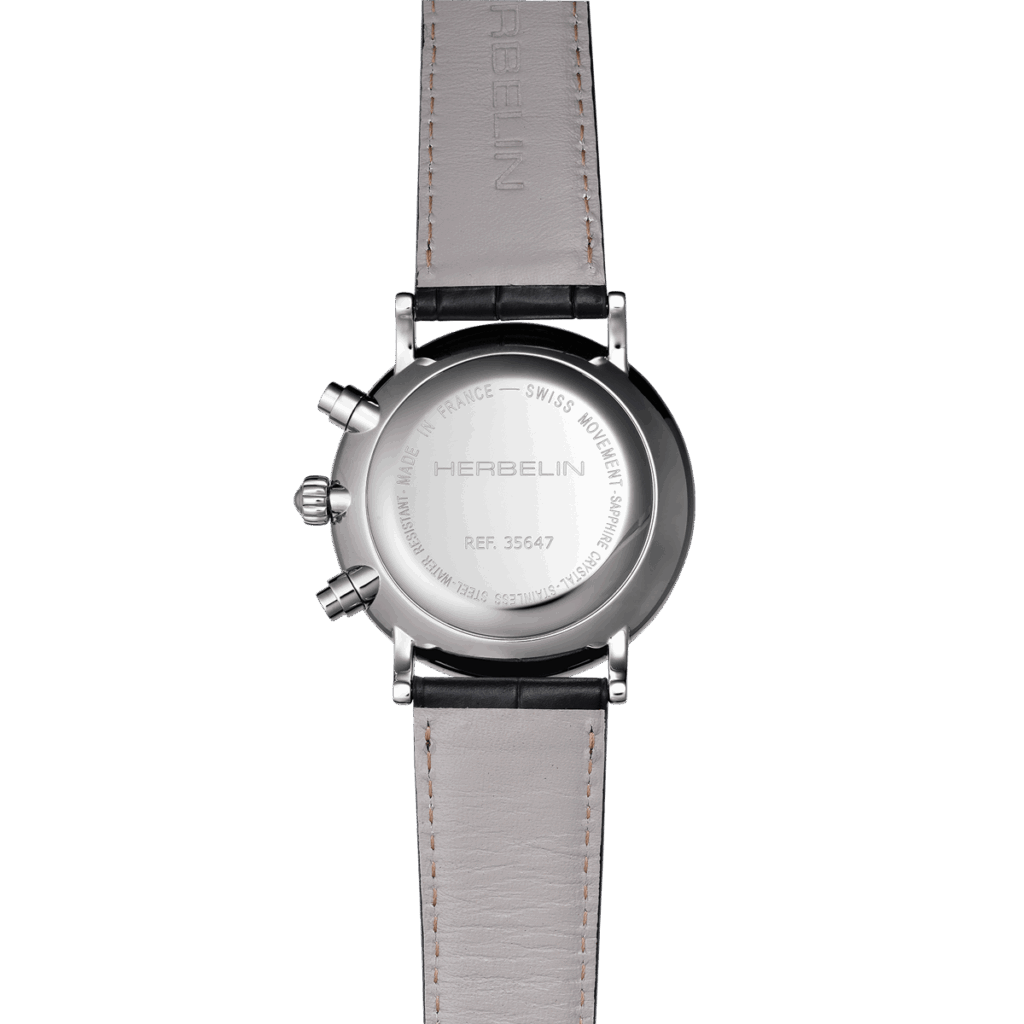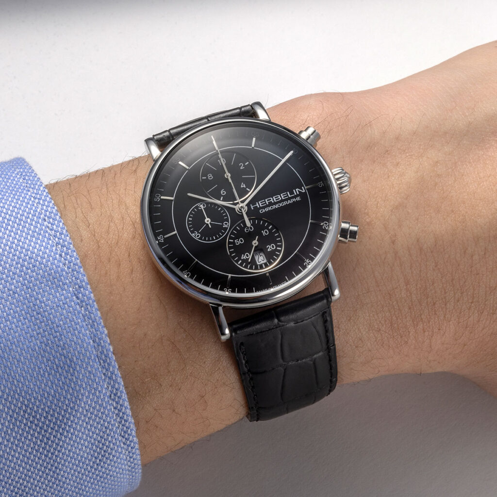 Elegant, klassisch, retro. Der Chronograph sieht einfach toll aus und ist wie alle HERBELIN Uhren mit einem Schweizer Quarzwerk, besten Materialien und Komponenten ausgestattet. Natürlich verfügt er über die wichtigsten Funktionen, die ein Chronograph aufweist.