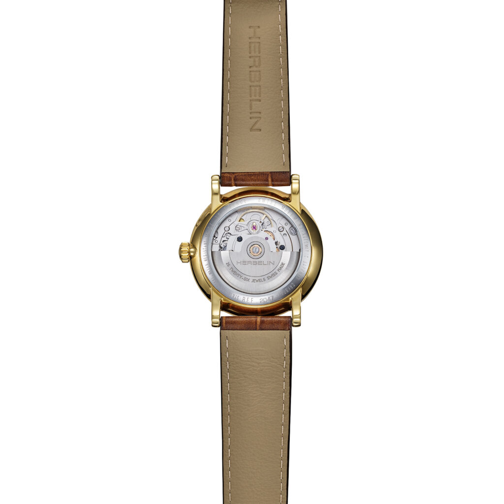 Zeitlose Eleganz trifft auf goldenen Glanz: Die HERBELIN® INSPIRATION Automatic 2047P08MA kombiniert französisches Design, Schweizer Präzision und klassische Uhrmacherkunst in vollendeter Form.