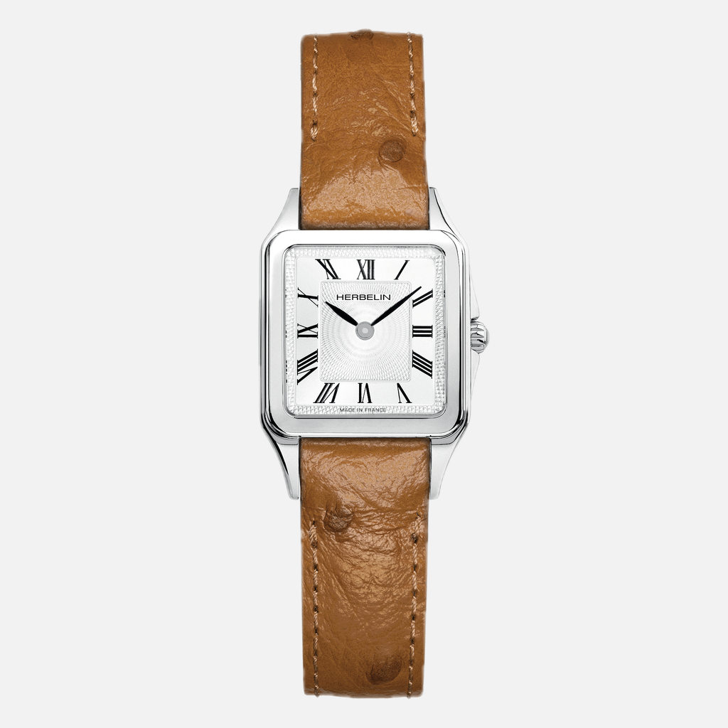 Mit femininer Eleganz und zugleich in einem zeitlos schönen Design schmiegt sich die LUNA mit dem stilvollen geprägten Lederarmband in einem eleganten Braunton um ihr Handgelenk. Sie bezaubert mit einem gelbgoldfarbenen Gehäuse in dem sich ein guillochiertes Zifferblatt im Art Deco Stil offenbart, das die Blicke gekonnt auf sich zieht. Der elegante Zeitmesser mit dem quadratischen Gehäuse präsentiert sich als eine charmante Uhr im französischen Chic des Savoir Vivre.