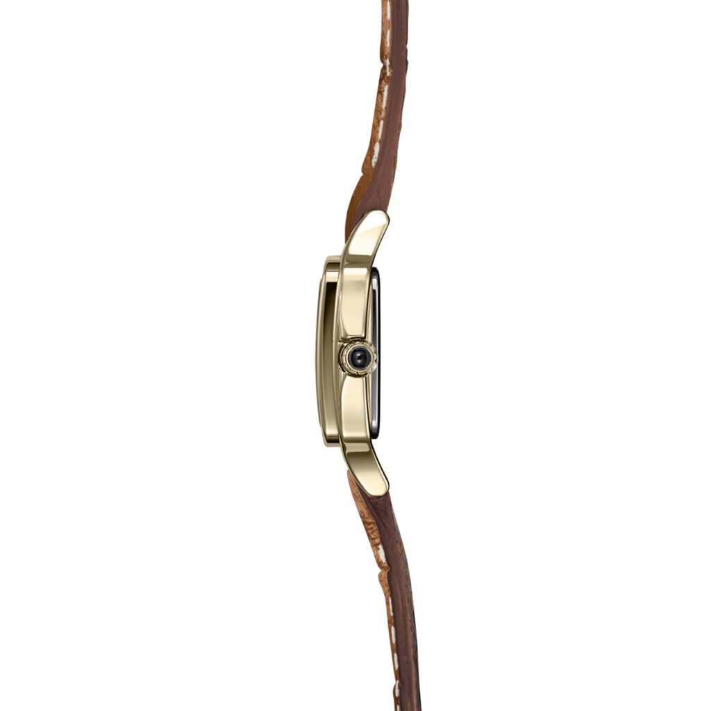 Die beliebte Damenuhr LUNA ist jetzt auch als Mini-Variante erhältlich – zierlich, stilvoll und voller Charakter. Das quadratische Gehäuse in einem beliebten Goldtfarbton und dem goldbraunen Lederarmband mit edlem Finish kombiniert klassisches Design mit modernem Chic auf ideale Weise. Aus hochwertigem Echtleder gefertigt, sorgt das charmante Armband für einen angenehmen Tragekomfort und umschmeichelt Ihr Handgelenk, für einen souveränen Auftritt – ob im Alltag oder zu besonderen Anlässen. Die elegante Farbgebung harmoniert perfekt mit dem Goldton des Gehäuses und unterstreicht Ihre Persönlichkeit mit zeitloser Raffinesse.