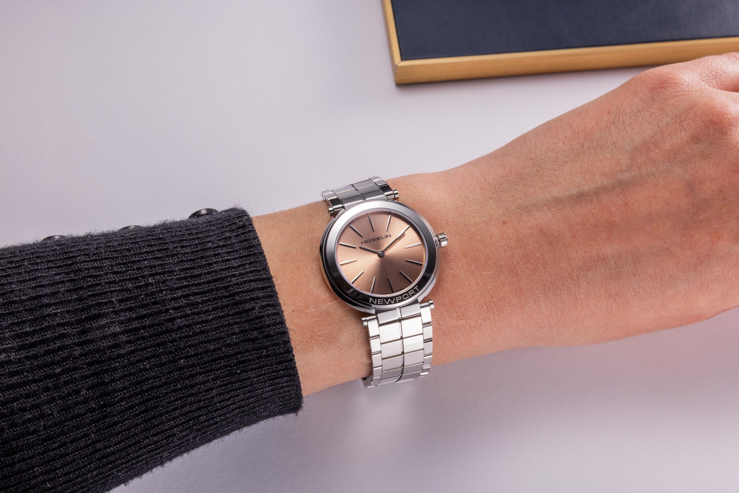 Mit ihrer klaren Linienführung, der femininen Farbgebung und dem urbanen Charakter eignet sich die Newport Slim ideal als stilvoller Begleiter im Alltag und bei besonderen Anlässen. Diese Damenuhr ist auch in Bicolor- und Edelstahlvarianten erhältlich – wahlweise mit Lederband und in verschiedenen Zifferblattfarben, auch mit römischen Ziffern erhältlich.