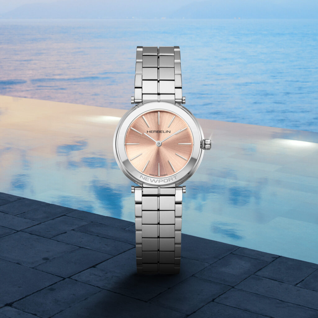 Die 2021 eingeführte Linie NEWPORT SLIM markiert eine elegante Erweiterung im erfolgreichen Newport-Universum von HERBELIN – modern, reduziert und ganz auf das Wesentliche fokussiert. Die Newport Slim strahlt zeitlose Raffinesse aus und richtet sich an Frauen, die mit einem dezenten, aber stilvollen Statement überzeugen möchten.