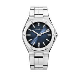 Als Herzstück im Inneren dieser Dreizeigeruhr schlägt ein Schweizer Quarzwerk. Die Herrendreizeigeruhr ist aus hochwertigem gebürstetem Edelstahl gefertigt. Das mit Streifen versehene marineblaue French Navy Zifferblatt wirkt lebendig und ausdrucksstark. Ein schöner Kontrast sind die silberfarbenen Leuchtindizes und Leuchtzeiger, die zudem eine gute Ablesbarkeit der Zeit ermöglichen. Das Zifferblatt wird von einem kratzfesten Saphirglas geschützt. Dank der Doppelfaltschließe lässt sich die Quarzuhr sicher und angenehm tragen.